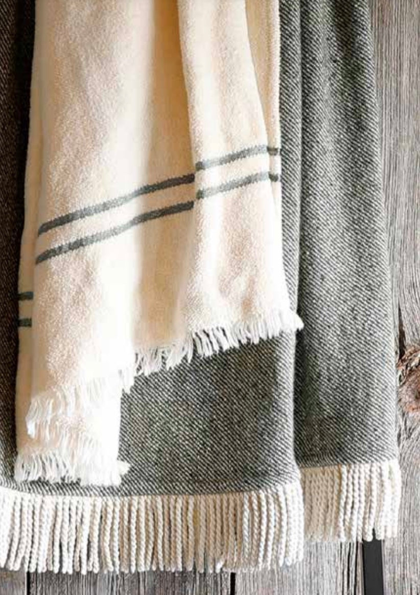 Scapa Home plaid ‘Brampton’ in donkergroen met franjes 140 cm x 180 cm